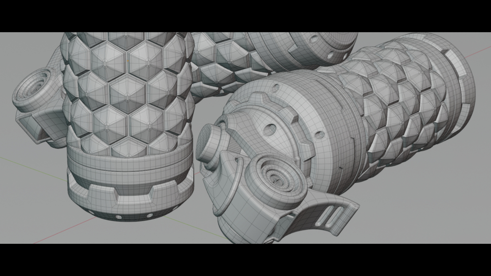 A production ready model of a sci-fi grenade with hand painted textures.