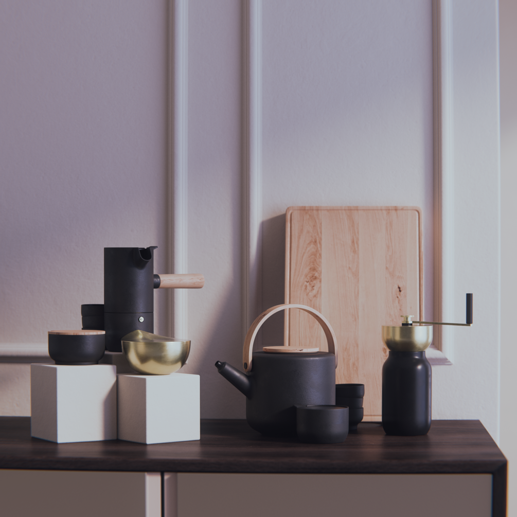 Theo is a designer set of tableware for coffee brewing and serving by Stelton. It has a modern scandinavian look and fits in most interiors.